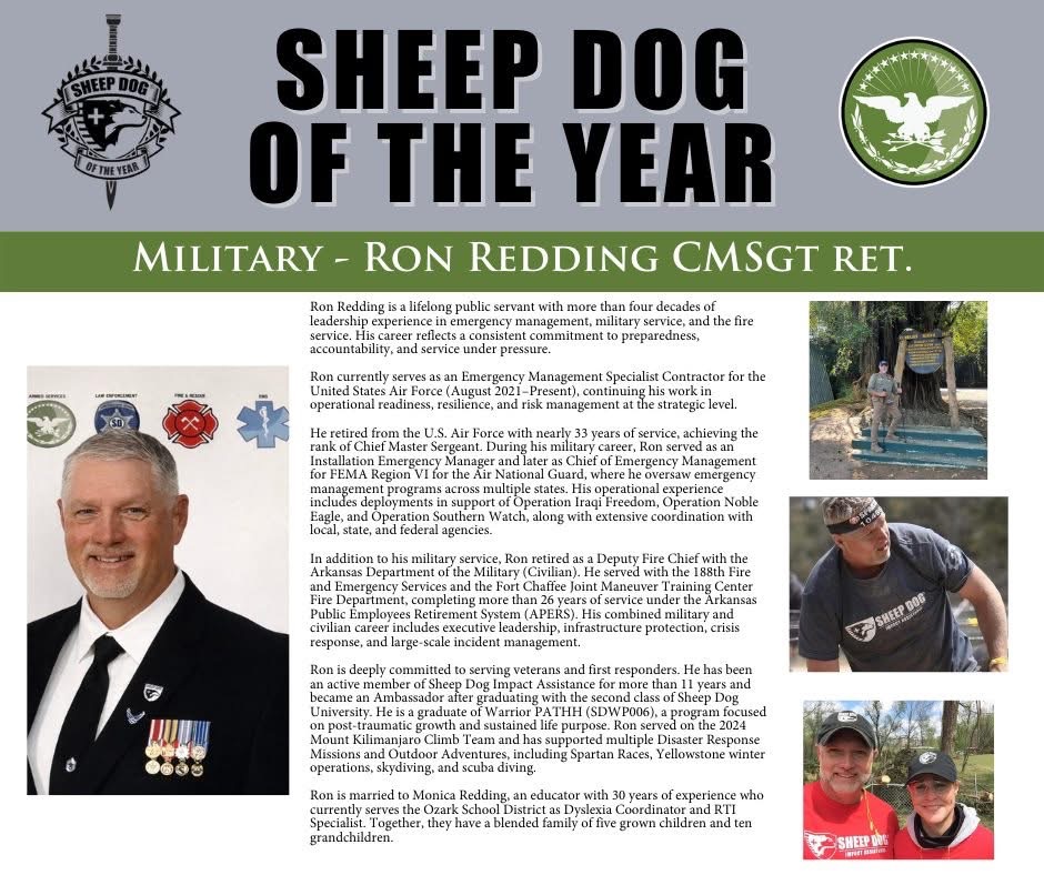 Among this year’s honorees is Ron Redding, Chief Master Sergeant (Ret.), whose lifetime of service reflects the true spirit of the Sheep Dog community.
