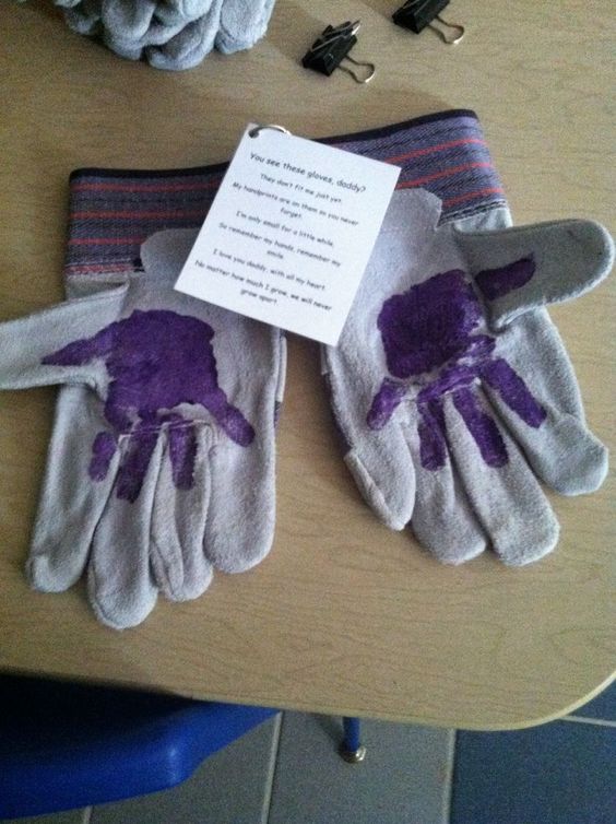 Use a pair of gardening gloves or work gloves for Dad, then have a child put their handprints on them, as seen. Attach this ADORABLE poem: “See these gloves daddy? They don’t fit me just yet, my handprints are on them so you never forget. I’m only small for a little while, So remember my hands and remember my smile. I love you daddy!” (Source unknown)