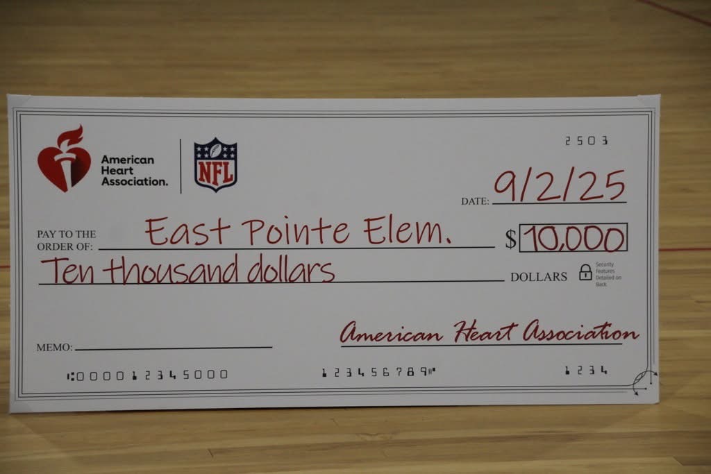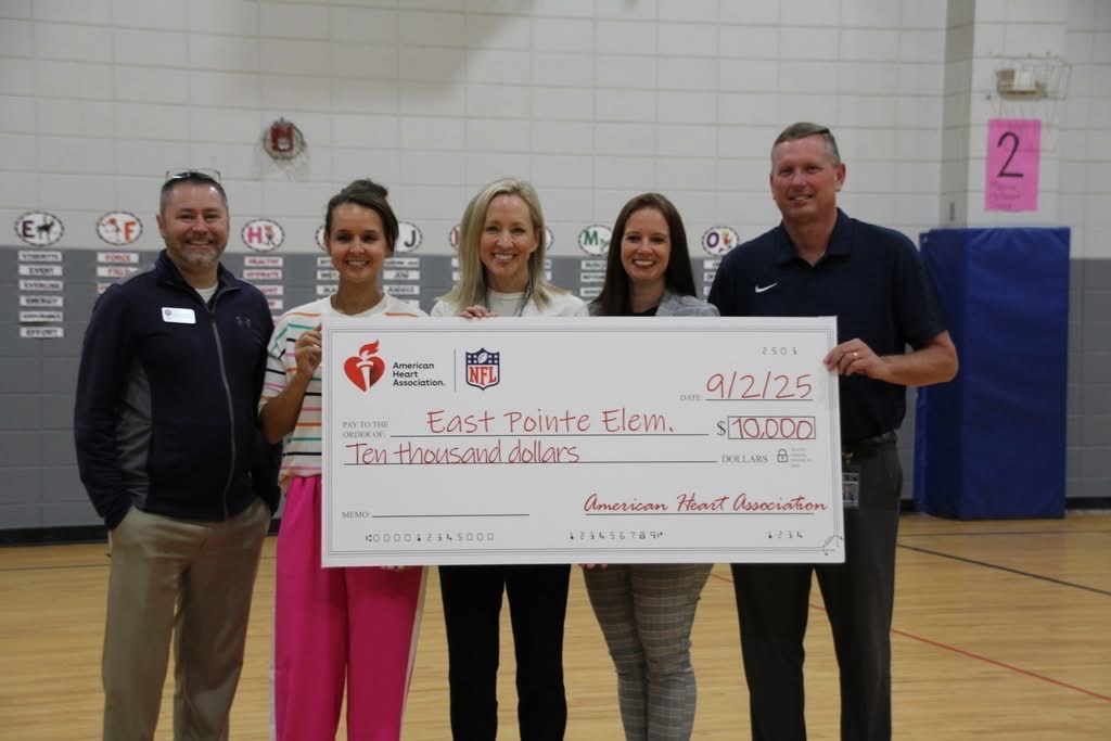 East Pointe Elementary is stepping up its commitment to student health and wellness after receiving a $10,000 grant to revamp its gymnasium. The award, presented through the NFL and the American Heart Association’s Kids Heart Challenge, will help transform the school’s gym into a dynamic space promoting physical activity and heart health.