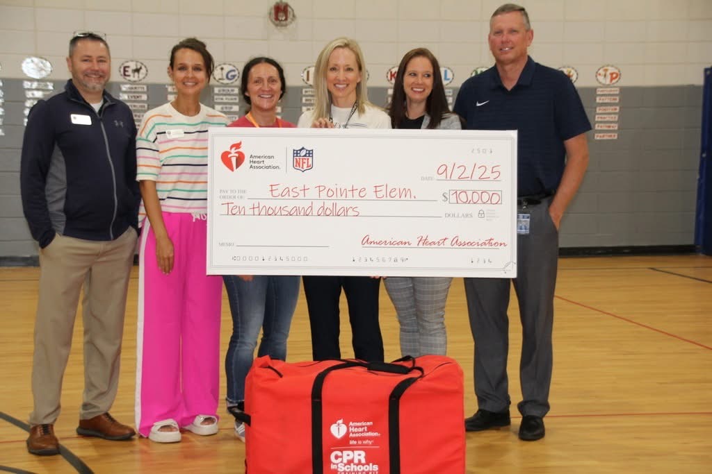 East Pointe Elementary is stepping up its commitment to student health and wellness after receiving a $10,000 grant to revamp its gymnasium. The award, presented through the NFL and the American Heart Association’s Kids Heart Challenge, will help transform the school’s gym into a dynamic space promoting physical activity and heart health.