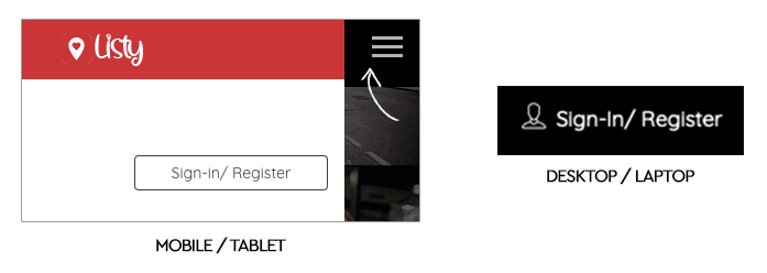 Depending how you access LISTY, will be the difference in how you approach the sign-in/registration aspect as mobile/tablet, and desktop can be different specifically upon device brand.
