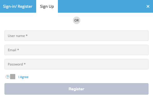 Once you click Sign-in / Register, you will see a pop-up box where you either log in or register your account.
