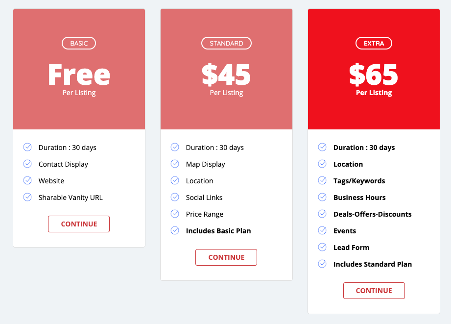 Once a plan has been chosen, and published, users will be taken to their listing page where you decide what information is to be published. That includes photos, social media urls, and so on. Available listing criteria is set to specific plan options.