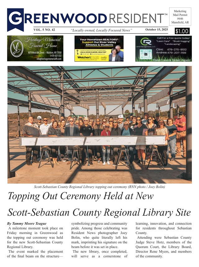 Greenwood Resident 10/15/25 Vol. 5 No. 42 Insider 2:31 pm Updated: By Resident News Network Share FacebookTwitterLinkedinPinterestWhatsAppEmail This content is reserved for RESIDENT INSIDER members. Please login or subscribe to view. - Paid Advertisement - TagsGreenwood Resident News Networkhttps://residentnewsnetwork.comLocally owned, locally focused news + sports source for the Arkansas River Valley. Share FacebookTwitterLinkedinPinterestWhatsAppEmail Latest news Featured Oregon-California Trail Association visit area to film historical documentaries Resident News Network - 9:00 pm - Paid Advertisement - - Affiliate - Headlines Honoring a Legacy of Service: David Millard Recognized for 25 Years with the Waldron Fire Department Cassie Coben - 6:43 pm Insider ‘A Flag’s Journey, A Nation’s Promise’: Stars and Stripes Sojourn 250 Inspires at Fort Smith National Cemetery Resident News Network - 12:27 pm Insider Greenwood Athletics News and Notes Ross Fujibayashi - 12:14 am Related news Featured Oregon-California Trail Association visit area to film historical documentaries Resident News Network - 9:00 pm Headlines Honoring a Legacy of Service: David Millard Recognized for 25 Years with the Waldron Fire Department Cassie Coben - 6:43 pm Insider ‘A Flag’s Journey, A Nation’s Promise’: Stars and Stripes Sojourn 250 Inspires at Fort Smith National Cemetery Resident News Network - 12:27 pm Insider Greenwood Athletics News and Notes Ross Fujibayashi - 12:14 am - Paid Advertisement -