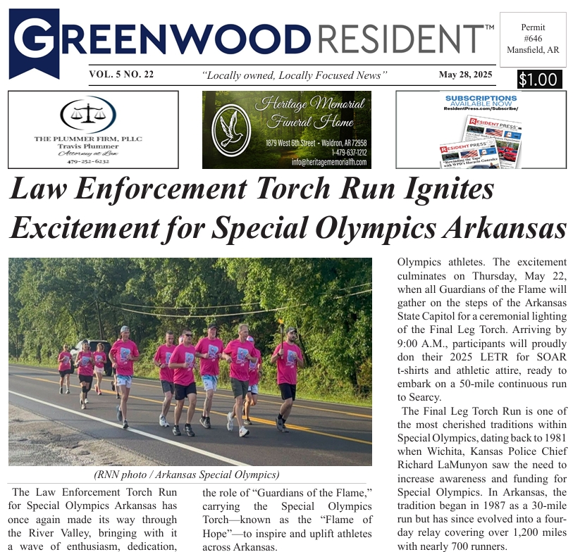 Greenwood Resident 5/22/25 Vol. 5 No. 22 Insider 6:30 pm Updated: By Resident News Network Share FacebookTwitterLinkedinPinterestWhatsAppEmail This content is reserved for RESIDENT INSIDER members. Please login or subscribe to view. - Paid Advertisement - Tagse-editionInsider Resident News Networkhttps://residentnewsnetwork.comLocally owned, locally focused news + sports source for the Arkansas River Valley. Share FacebookTwitterLinkedinPinterestWhatsAppEmail Latest news Featured Oregon-California Trail Association visit area to film historical documentaries Resident News Network - 9:00 pm - Paid Advertisement - - Affiliate - Headlines Honoring a Legacy of Service: David Millard Recognized for 25 Years with the Waldron Fire Department Cassie Coben - 6:43 pm Insider ‘A Flag’s Journey, A Nation’s Promise’: Stars and Stripes Sojourn 250 Inspires at Fort Smith National Cemetery Resident News Network - 12:27 pm Insider Greenwood Athletics News and Notes Ross Fujibayashi - 12:14 am Related news Featured Oregon-California Trail Association visit area to film historical documentaries Resident News Network - 9:00 pm Headlines Honoring a Legacy of Service: David Millard Recognized for 25 Years with the Waldron Fire Department Cassie Coben - 6:43 pm Insider ‘A Flag’s Journey, A Nation’s Promise’: Stars and Stripes Sojourn 250 Inspires at Fort Smith National Cemetery Resident News Network - 12:27 pm Insider Greenwood Athletics News and Notes Ross Fujibayashi - 12:14 am - Paid Advertisement -