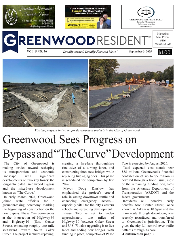 Greenwood Resident 9/3/25 Vol. 5 No. 36 Insider 1:11 pm Updated: By Resident News Network Share FacebookTwitterLinkedinPinterestWhatsAppEmail This content is reserved for RESIDENT INSIDER members. Please login or subscribe to view. - Paid Advertisement - TagsGreenwoodInsider Resident News Networkhttps://residentnewsnetwork.comLocally owned, locally focused news + sports source for the Arkansas River Valley. Share FacebookTwitterLinkedinPinterestWhatsAppEmail Latest news Featured Oregon-California Trail Association visit area to film historical documentaries Resident News Network - 9:00 pm - Paid Advertisement - - Affiliate - Headlines Honoring a Legacy of Service: David Millard Recognized for 25 Years with the Waldron Fire Department Cassie Coben - 6:43 pm Insider ‘A Flag’s Journey, A Nation’s Promise’: Stars and Stripes Sojourn 250 Inspires at Fort Smith National Cemetery Resident News Network - 12:27 pm Insider Greenwood Athletics News and Notes Ross Fujibayashi - 12:14 am Related news Featured Oregon-California Trail Association visit area to film historical documentaries Resident News Network - 9:00 pm Headlines Honoring a Legacy of Service: David Millard Recognized for 25 Years with the Waldron Fire Department Cassie Coben - 6:43 pm Insider ‘A Flag’s Journey, A Nation’s Promise’: Stars and Stripes Sojourn 250 Inspires at Fort Smith National Cemetery Resident News Network - 12:27 pm Insider Greenwood Athletics News and Notes Ross Fujibayashi - 12:14 am - Paid Advertisement -