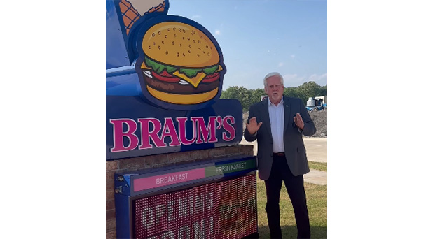 Braum’s will host a grand opening celebration from May 11 through May 17. Customers who visit during that week can receive scratch-to-win cards featuring prizes such as a $100 Braum’s gift card, wireless headphones, a laptop computer, and free food and merchandise.