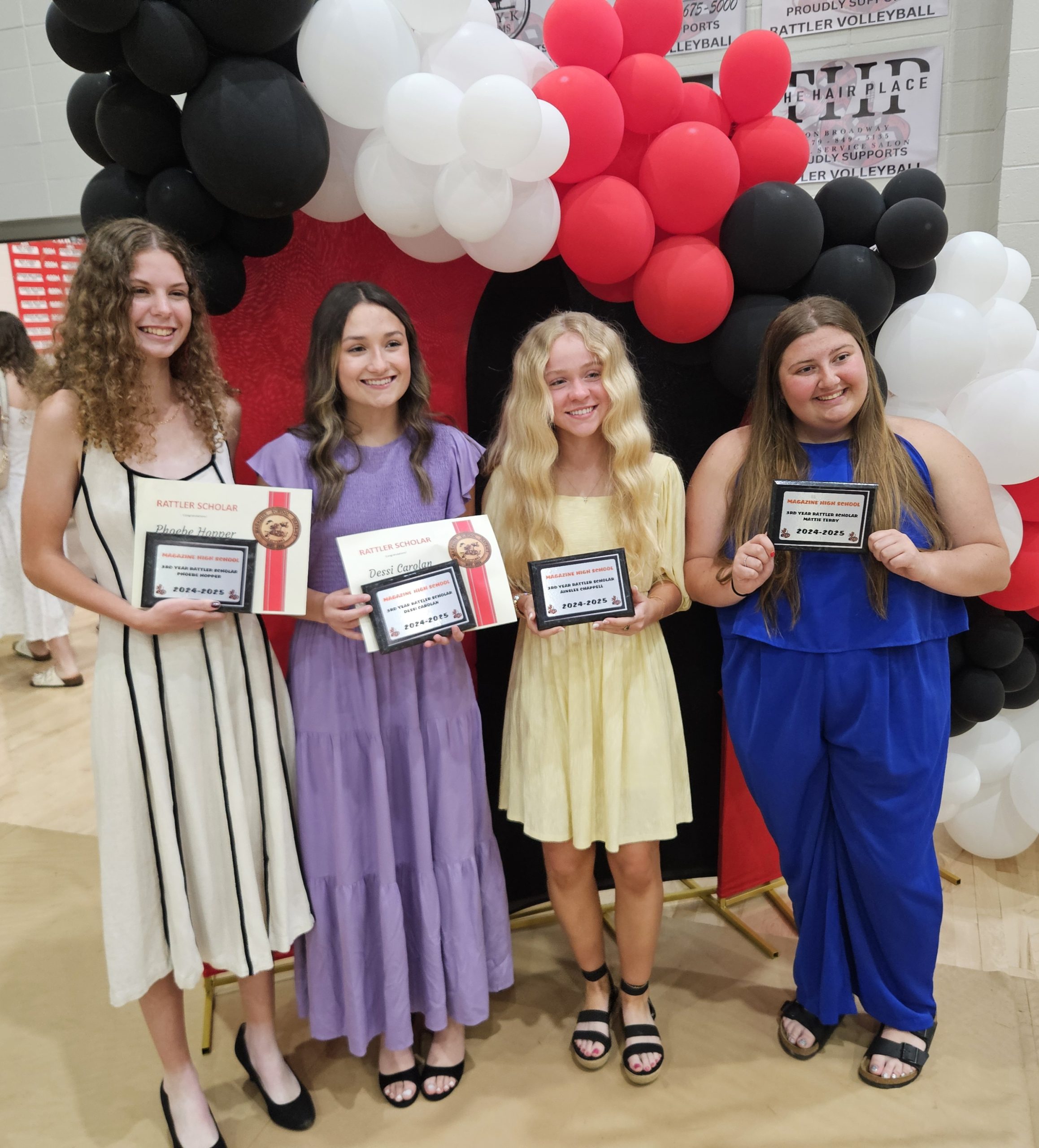 On Tuesday, May 13, Magazine High School held its 4th Annual Scholars Banquet. To be recognized, students must earn a 3.5 or higher GPA each semester. Students are recognized as either a first, second, third, or fourth year scholar, depending on the cumulative number of semesters they are eligible. Students recieve a gift for each year: First Year Scholars recieve a t-shirt, Second Year Scholars recieve an insulated cup, Third Year Scholars recieve a plaque, and Fourth Year Scholars recieve a personalized “letter” blanket. As this was only the fourth year of the program, is was the school’s first opportunity to recognize the 4th Year Scholars.