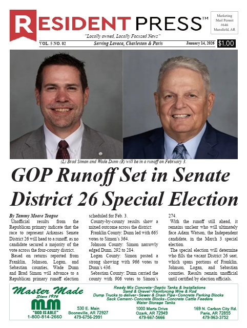 Resident Press (Lavaca, Charleston, Paris edition) 01/14/26 Vol. 5 No. 2 Insider 11:29 am Updated: 16 hours ago By Resident News Network Share FacebookTwitterLinkedinPinterestWhatsAppEmail This content is reserved for RESIDENT INSIDER members. Please login or subscribe to view. - Paid Advertisement - TagsfranklinLogan Resident News Networkhttps://residentnewsnetwork.comLocally owned, locally focused news + sports source for the Arkansas River Valley. Share FacebookTwitterLinkedinPinterestWhatsAppEmail Latest news Featured Arvest Foundation awards $280,500 in 2025 to Fort Smith area organizations Resident News Network - 4:33 pm - Paid Advertisement - - Affiliate - Insider Resident Press (Scott & So. Sebastian County edition) 01/14/26 Vol. 8 No. 02 Resident News Network - 11:38 am Insider Greenwood Resident 01/14/26 Vol. 6 No. 02 Resident News Network - 11:32 am Featured “Just Roll with It” Serving up Recipes and Humor Resident News Network - 8:39 am Related news Featured Arvest Foundation awards $280,500 in 2025 to Fort Smith area organizations Resident News Network - 4:33 pm Insider Resident Press (Scott & So. Sebastian County edition) 01/14/26 Vol. 8 No. 02 Resident News Network - 11:38 am Insider Greenwood Resident 01/14/26 Vol. 6 No. 02 Resident News Network - 11:32 am Featured “Just Roll with It” Serving up Recipes and Humor Resident News Network - 8:39 am - Paid Advertisement -