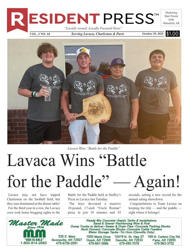 Resident Press (Lavaca, Charleston, Paris edition) 10/29/25 Vol. 4 No. 44 Insider 8:42 am Updated: By Resident News Network Share FacebookTwitterLinkedinPinterestWhatsAppEmail This content is reserved for RESIDENT INSIDER members. Please login or subscribe to view. - Paid Advertisement - TagsfranklinLogan Resident News Networkhttps://residentnewsnetwork.comLocally owned, locally focused news + sports source for the Arkansas River Valley. Share FacebookTwitterLinkedinPinterestWhatsAppEmail Latest news News State Capitol Week in Review from Senator Terry Rice Resident News Network - 2:08 pm - Paid Advertisement - - Affiliate - Food “Just Roll with It” Serving up Recipes and Humor Resident News Network - 2:06 pm Lifestyle Greenwood Fine Arts Academy Launches Fundraiser in Hopes of Building Permanent Community Arts Center Resident News Network - 2:02 pm Networks Candidate Forum Draws Strong Crowd for In-Depth Discussion Ahead of Elections Resident News Network - 11:43 pm Related news News State Capitol Week in Review from Senator Terry Rice Resident News Network - 2:08 pm Food “Just Roll with It” Serving up Recipes and Humor Resident News Network - 2:06 pm Lifestyle Greenwood Fine Arts Academy Launches Fundraiser in Hopes of Building Permanent Community Arts Center Resident News Network - 2:02 pm Networks Candidate Forum Draws Strong Crowd for In-Depth Discussion Ahead of Elections Resident News Network - 11:43 pm - Paid Advertisement -