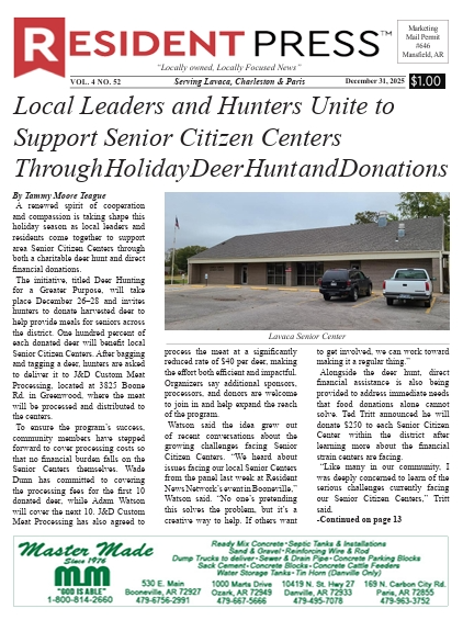 Resident Press (Lavaca, Charleston, Paris edition) 12/31/25 Vol. 4 No. 52 Insider 4:34 pm Updated: 3 hours ago By Resident News Network Share FacebookTwitterLinkedinPinterestWhatsAppEmail This content is reserved for RESIDENT INSIDER members. Please login or subscribe to view. - Paid Advertisement - Resident News Networkhttps://residentnewsnetwork.comLocally owned, locally focused news + sports source for the Arkansas River Valley. Share FacebookTwitterLinkedinPinterestWhatsAppEmail Latest news Insider Greenwood Resident 12/31/25 Vol. 5 No. 52 Resident News Network - 4:30 pm - Paid Advertisement - - Affiliate - Insider Resident Press (Scott & So. Sebastian County edition) 12/31/25 Vol. 7 No. 52 Resident News Network - 4:28 pm Insider Resident Press (Scott & So. Sebastian County Special Football Championship edition) 12/31/25 Vol. 7 No. 52 Resident News Network - 4:22 pm Featured “Just Roll with It” Serving up Recipes and Humor Resident News Network - 6:44 pm Related news Insider Greenwood Resident 12/31/25 Vol. 5 No. 52 Resident News Network - 4:30 pm Insider Resident Press (Scott & So. Sebastian County edition) 12/31/25 Vol. 7 No. 52 Resident News Network - 4:28 pm Insider Resident Press (Scott & So. Sebastian County Special Football Championship edition) 12/31/25 Vol. 7 No. 52 Resident News Network - 4:22 pm Featured “Just Roll with It” Serving up Recipes and Humor Resident News Network - 6:44 pm - Paid Advertisement -