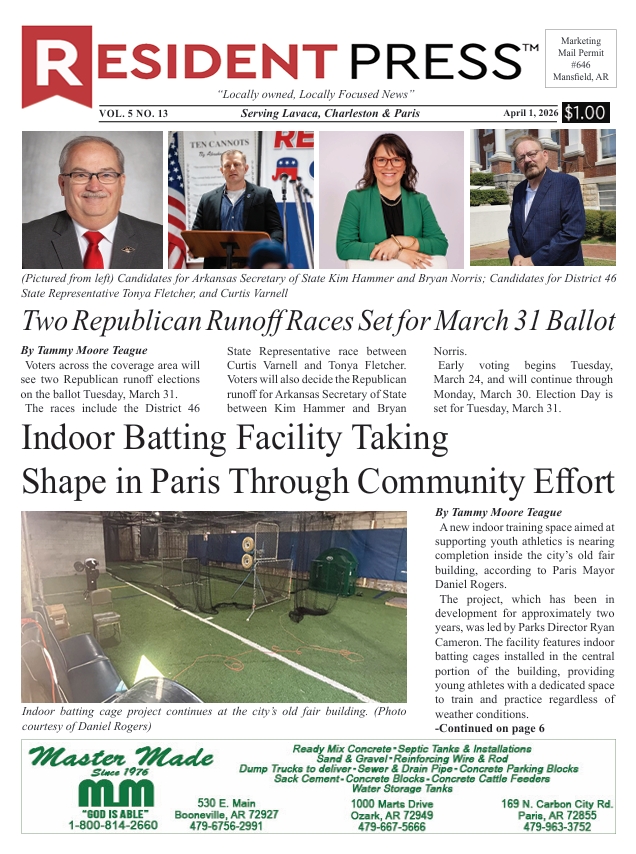 Resident Press (Lavaca, Charleston, Paris edition) 4/1/26 Vol. 5 No. 13 Insider 4:27 pm Updated: 3 hours ago By Resident News Network Share FacebookTwitterLinkedinPinterestWhatsAppEmail This content is reserved for RESIDENT INSIDER members. Please login or subscribe to view. - Paid Advertisement - Resident News Networkhttps://residentnewsnetwork.comLocally owned, locally focused news + sports source for the Arkansas River Valley. Share FacebookTwitterLinkedinPinterestWhatsAppEmail Latest news Insider Returning to the Roots: Farmhouse Ranch Blends Dairy, Education, and Legacy in Scott County Resident News Network - 4:36 pm - Paid Advertisement - - Affiliate - Insider Resident Press (Scott & So. Sebastian County edition) 4/1/26 Vol. 8 No. 13 Resident News Network - 4:22 pm Insider Greenwood Resident 04/1/26 Vol. 6 No. 13 Resident News Network - 4:19 pm Insider GG’s Roots & Remedies Brings Natural Wellness and Local Goods to Huntington Resident News Network - 12:31 pm Related news Insider Returning to the Roots: Farmhouse Ranch Blends Dairy, Education, and Legacy in Scott County Resident News Network - 4:36 pm Insider Resident Press (Scott & So. Sebastian County edition) 4/1/26 Vol. 8 No. 13 Resident News Network - 4:22 pm Insider Greenwood Resident 04/1/26 Vol. 6 No. 13 Resident News Network - 4:19 pm Insider GG’s Roots & Remedies Brings Natural Wellness and Local Goods to Huntington Resident News Network - 12:31 pm - Paid Advertisement -