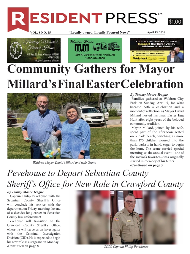 Resident Press (Scott & So. Sebastian County edition) 4/8/26 Vol. 8 No. 15 Insider 2:20 pm Updated: 3 hours ago By Resident News Network Share FacebookTwitterLinkedinPinterestWhatsAppEmail This content is reserved for RESIDENT INSIDER members. Please login or subscribe to view. - Paid Advertisement - Resident News Networkhttps://residentnewsnetwork.comLocally owned, locally focused news + sports source for the Arkansas River Valley. Share FacebookTwitterLinkedinPinterestWhatsAppEmail Latest news Featured Local ‘Hero for Hire’ Brings Spider-Man to Life Across the Community Resident News Network - 2:43 pm - Paid Advertisement - - Affiliate - Lifestyle “Just Roll with It” Serving up Recipes and Humor Resident News Network - 2:23 pm Insider Resident Press (Lavaca, Charleston, Paris edition) 4/8/26 Vol. 5 No. 15 Resident News Network - 2:16 pm Insider Greenwood Resident 04/8/26 Vol. 6 No. 15 Resident News Network - 2:13 pm Related news Featured Local ‘Hero for Hire’ Brings Spider-Man to Life Across the Community Resident News Network - 2:43 pm Lifestyle “Just Roll with It” Serving up Recipes and Humor Resident News Network - 2:23 pm Insider Resident Press (Lavaca, Charleston, Paris edition) 4/8/26 Vol. 5 No. 15 Resident News Network - 2:16 pm Insider Greenwood Resident 04/8/26 Vol. 6 No. 15 Resident News Network - 2:13 pm - Paid Advertisement -