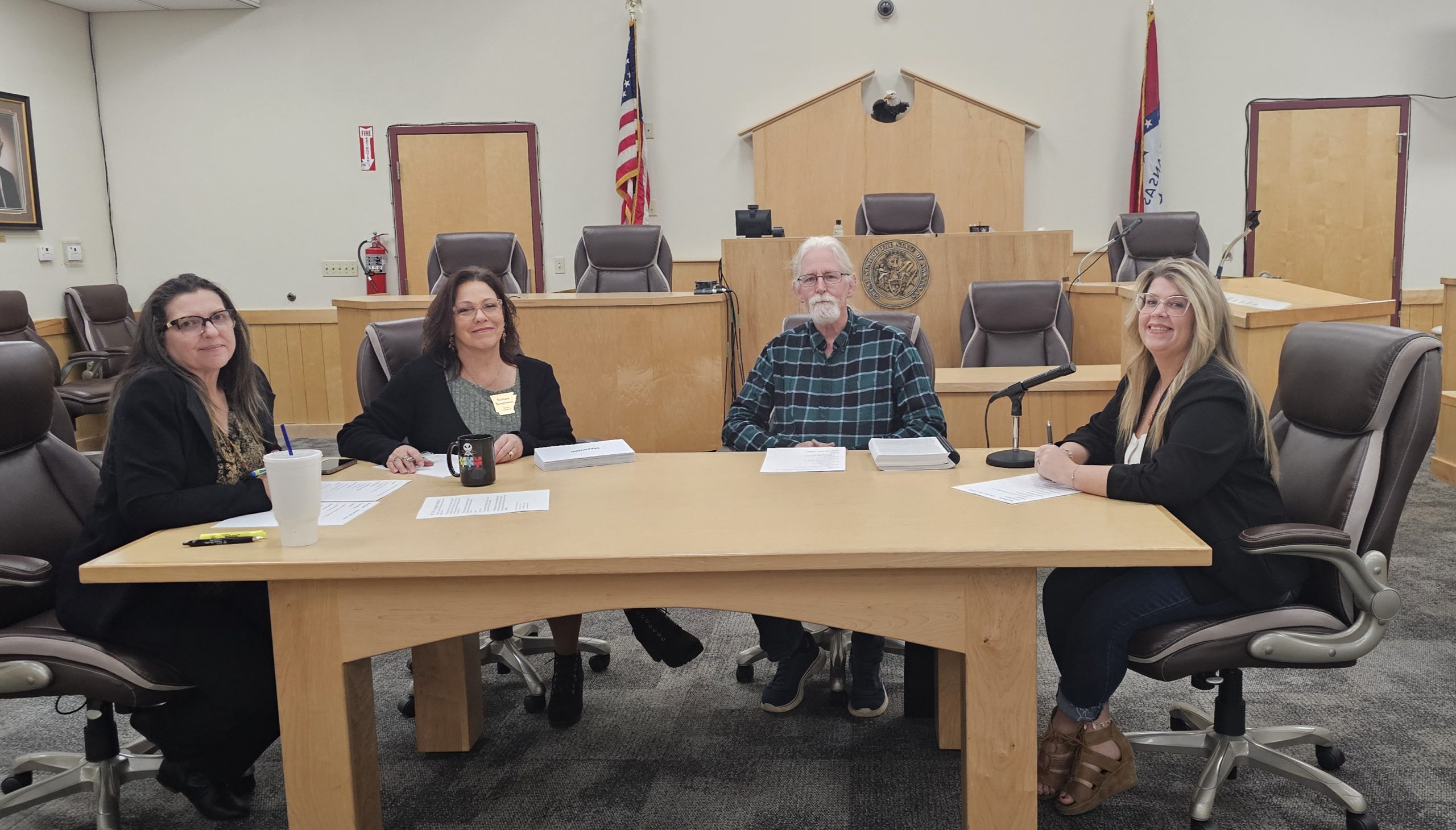 Clerk Brianna Freeman, Deputy Clerk Dawn Austin-Richmond, SCBEC Chairwoman Barbara Templeman and Commissioner Ken Stricker performed the draw as several candidates looked on.