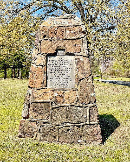 Lewisburg established by settler Stephen Lewis in 1925, was a one of the most important towns along the Arkansas River from Little Rock to Fort Smith. Originally formed as a trading post with local natives, it became an important steamboat stop and refueling station. Located just a few miles south of present-day Morrilton, it had a reputation of being one of the central commerce sites for the region. Cotton and farm products were shipped to market from the steamboat landing and a ferry provided transportation back and forth across the river.