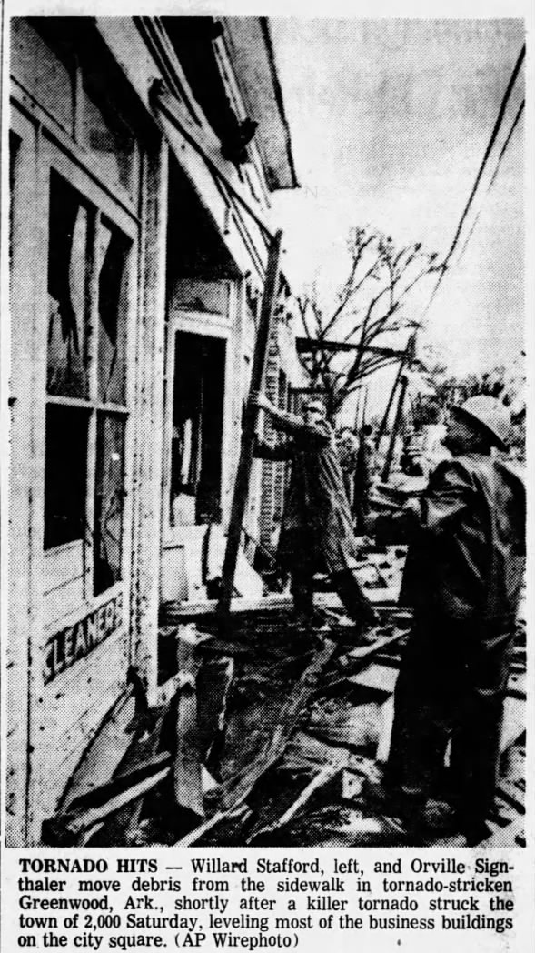 My son was in Fort Smith in April of 1996 when the tornado hit the downtown area and swept through an area running from the riverfront into residential Van Buren, killing two people and injuring dozens. Terrified, he called me in the middle of a storm that was over before he could explain what was happening but the clean-up took months.