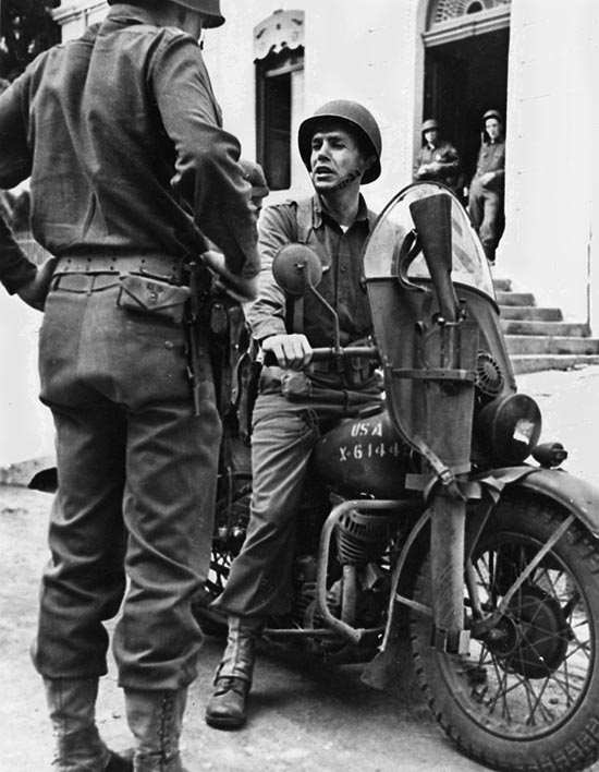 After graduation in 1933, Darby was assigned to an artillery unit and became a career officer. When WWII began, he was a part of the first group sent to Europe to fight. While stationed in Ireland, Darby became interested in the British Commandoes. The Commandoes were a unique fighting force. Men selected for the Commandoes were the best of the best. Specially trained to carry out the most difficult and dangerous tasks, they were the first to be sent into battle. Darby was appointed by General Russell Hartle to organize and train a new elite commando group called the Army Rangers. The group was first used in the battle for North Africa. The elite troops established their reputation by executing several successful night raids with the daring Darby fighting in the front alongside his men. His commanding officer report read, “Lt. Col. Darby struck the heavily fortified enemy position at dawn. Always conspicuously at the head of this troops, he personally led assaults against the enemy line in the face of heavy machine gun and artillery fire.”