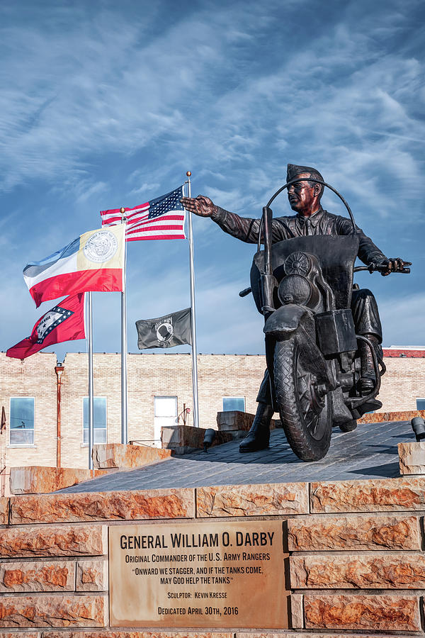Driving into downtown Ft. Smith on Rogers Avenue stands one of the most noticeable statues in the state, that of William O. Darby. Darby is depicted in his full W.W.II uniform riding on his famous Harley-Davison motorcycle. Always unique, daring, and adventuresome, Darby rode the motorcycle checking on his elite troops and leading them into battle.
