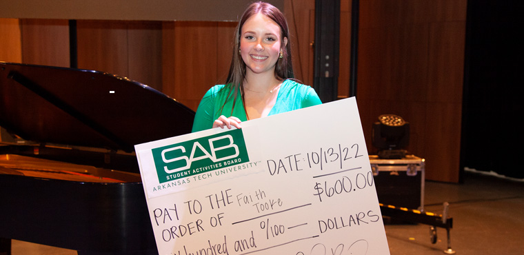 She won the annual talent competition for ATU students sponsored by ATU Student Activities Board by singing “Something in the Water” by Carrie Underwood.