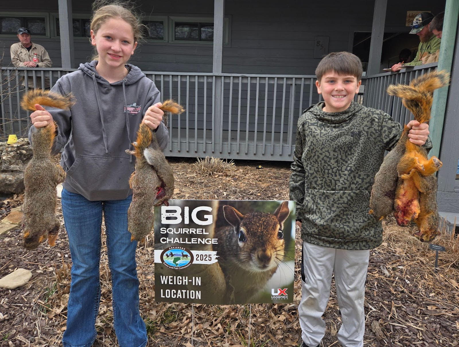 Elijah and Abigail Sleighton weighed in an impressive three-squirrel bag limit that included a black fox squirrel. Less than one percent of fox squirrels have this melanistic trait. The team took second place at the Fort Smith location, and Abigail even won the grand door prize at Fort Smith, a Umarex air rifle valued at $190. AGFC photo courtesy Kiley VanMatre.